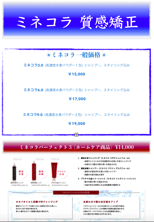 1.改定商品 一部を除く技術料・一部を除く店舗商品